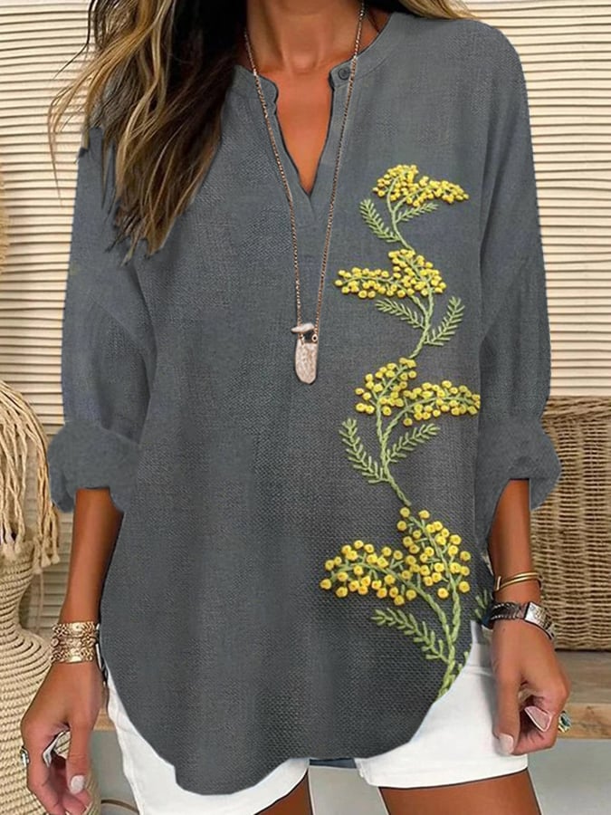 Women's Floral Print Casual Long Sleeve V-Neck Shirt