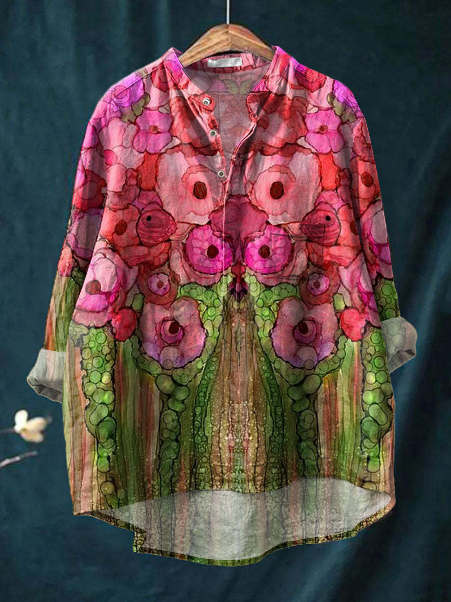 Women's Florals Art Print Casual Long Sleeve Comfortable Cotton Shirt