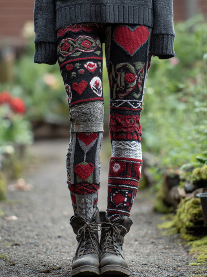 Women's Vintage Heart Patchwork Art Casual Leggings