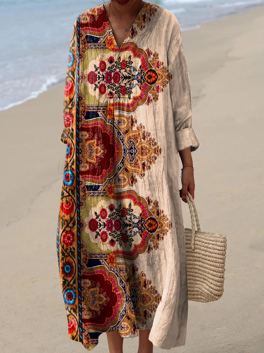 Women's Vintage Lovely Floral Art Print Cotton Dress