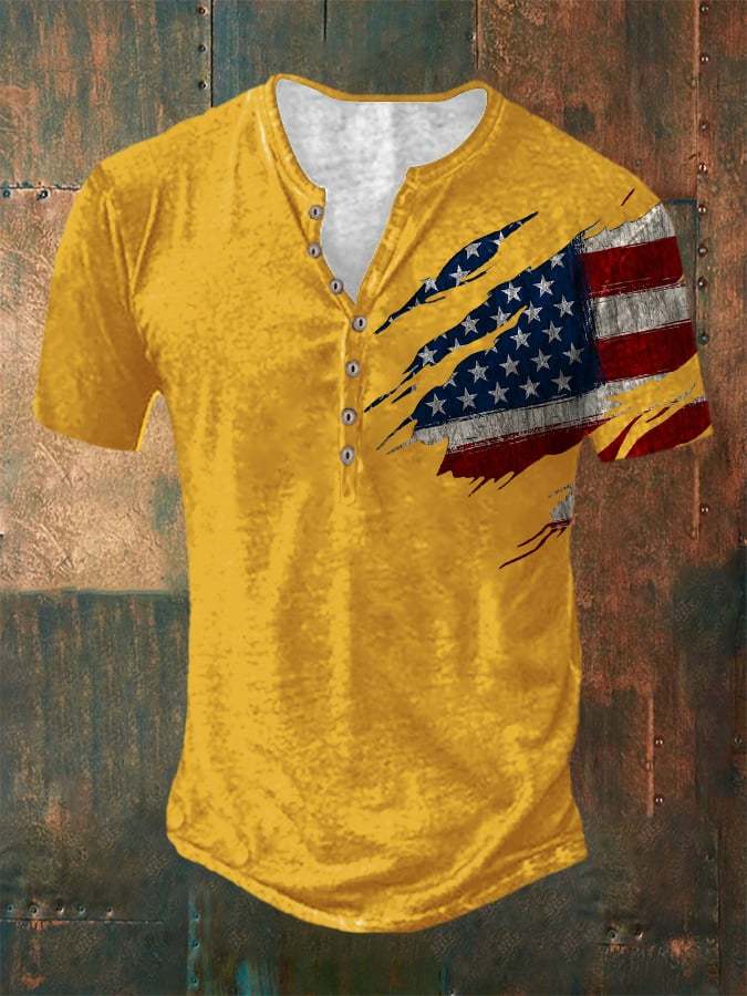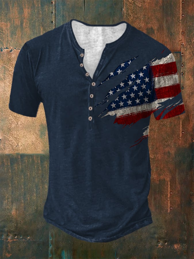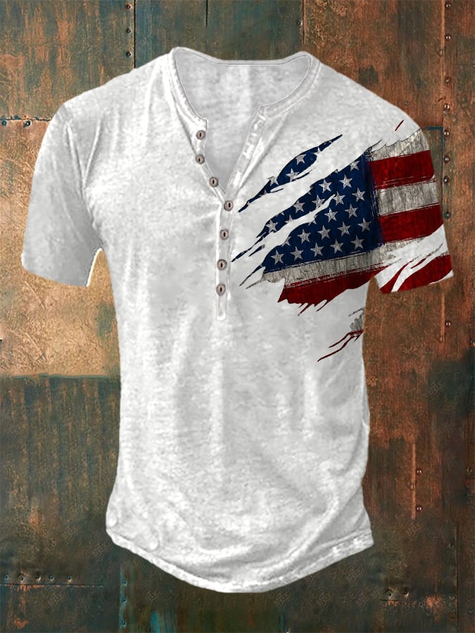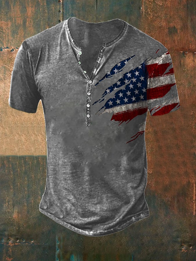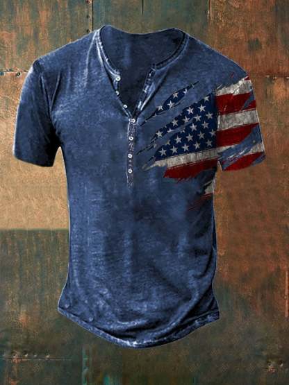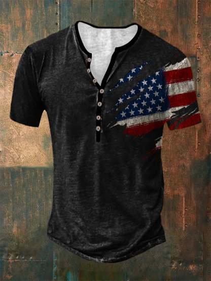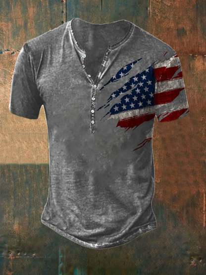 Casual Button Neck Short Sleeve Printed T-Shirt
