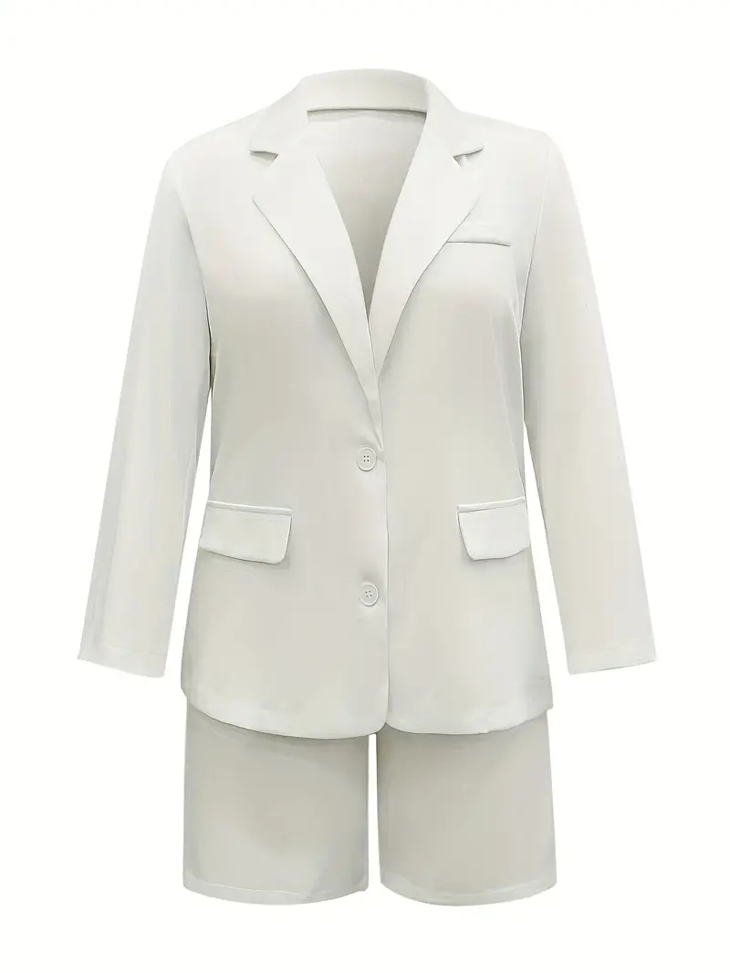 Casual Long Sleeve Coat and Shorts Two-piece Set