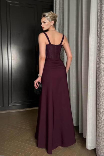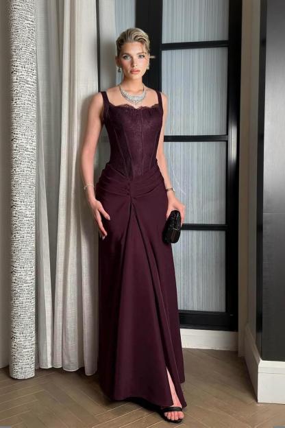 Elegant Lace With Side Slit Evening Gown Maxi Dress