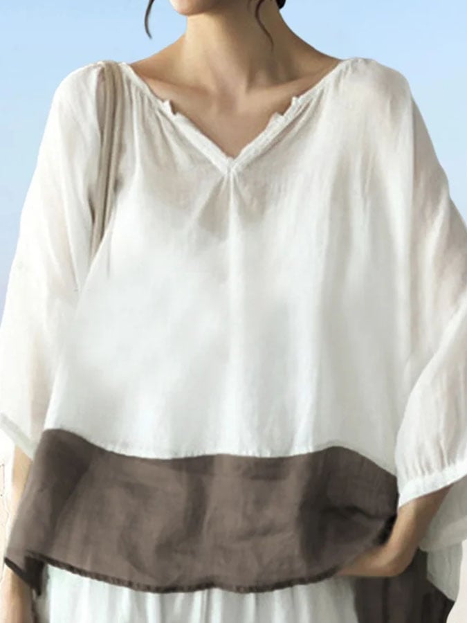 Ladies Casual Colorblock Loose Shirt
