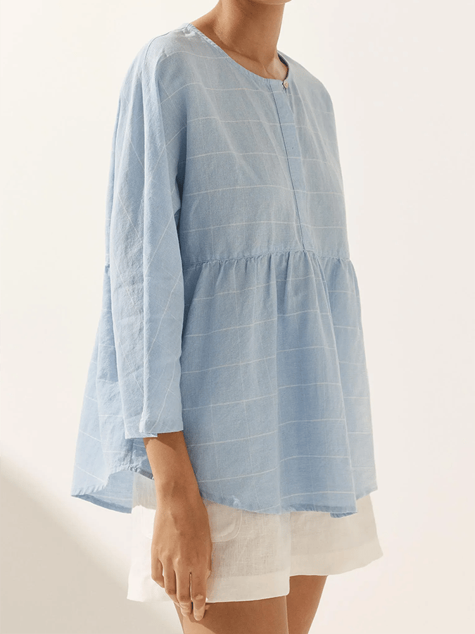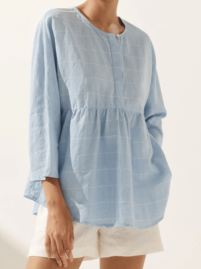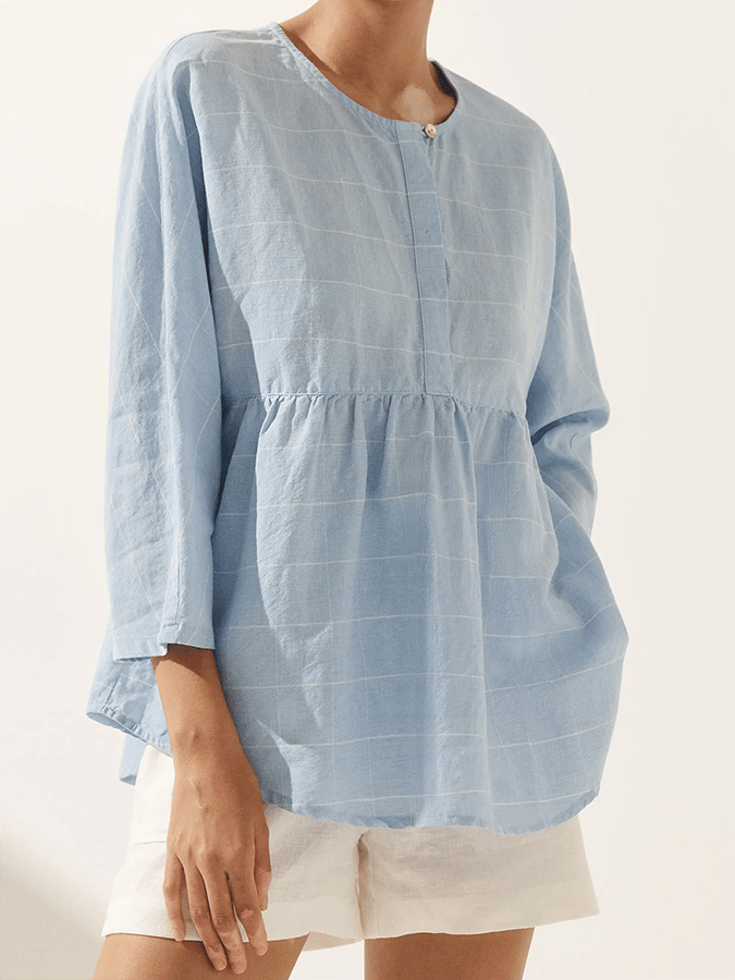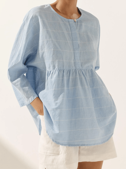 Ladies Plaid Casual Loose Long Sleeve Top