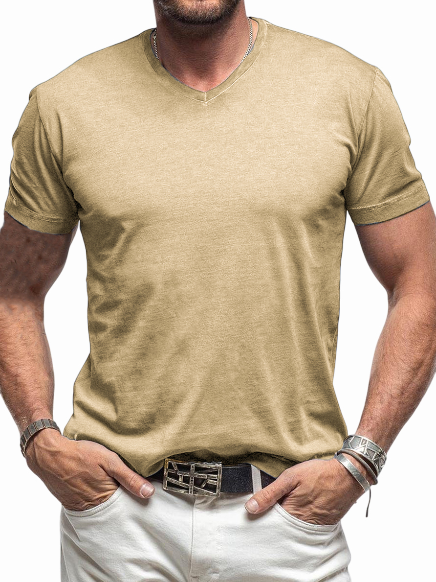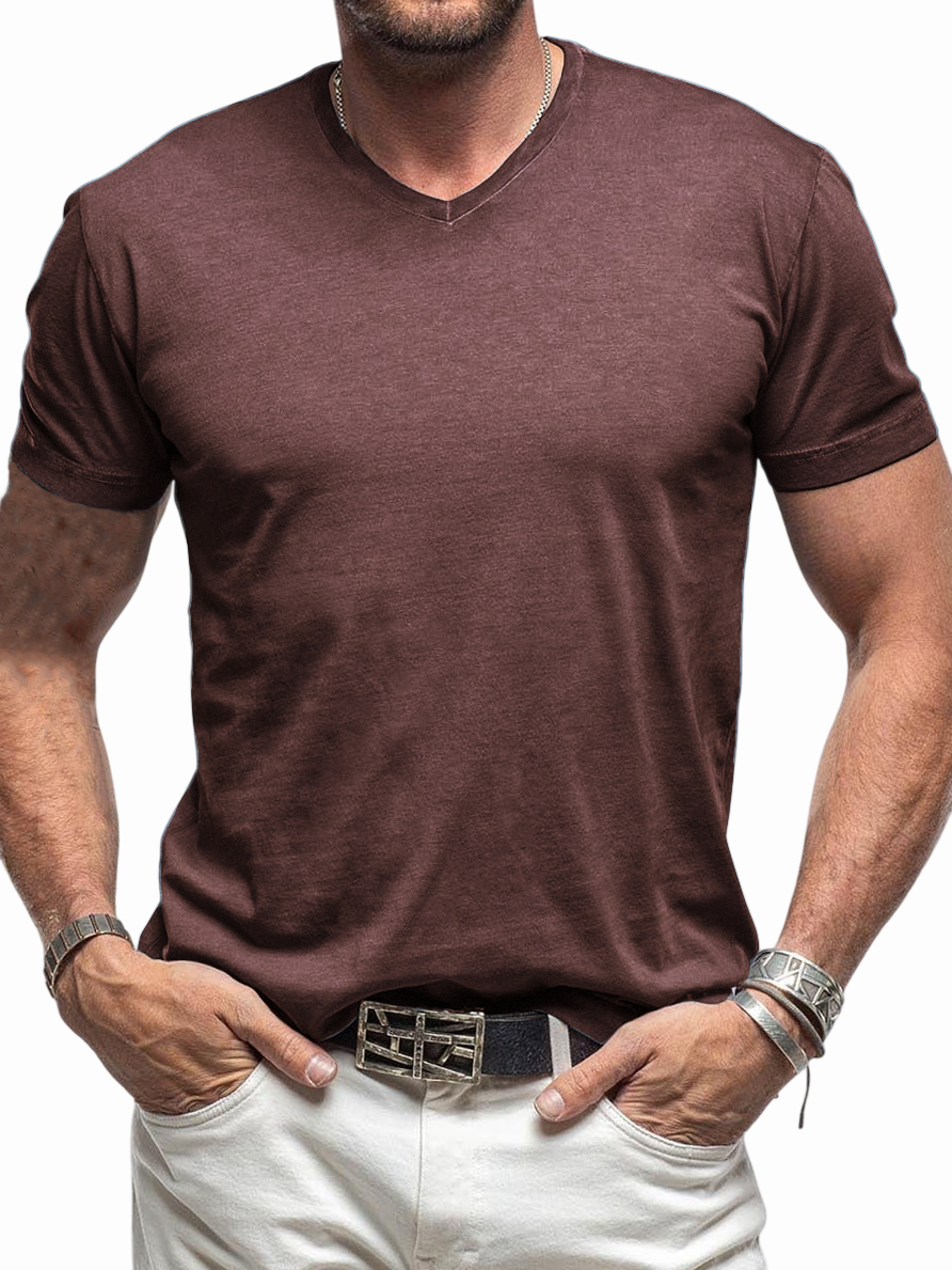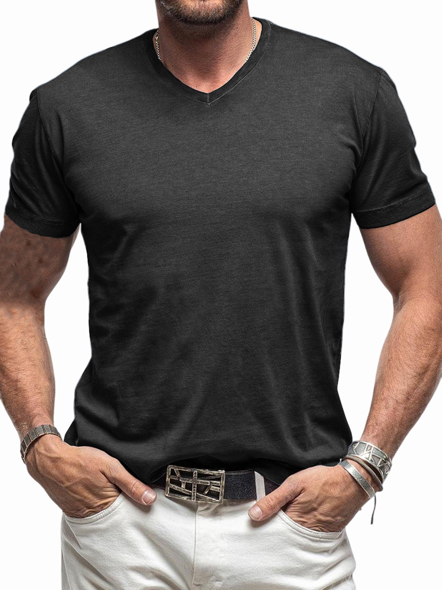Men's Comfortable V-neck Cotton Basic Bottoming Shirt Short-sleeved T-shirt