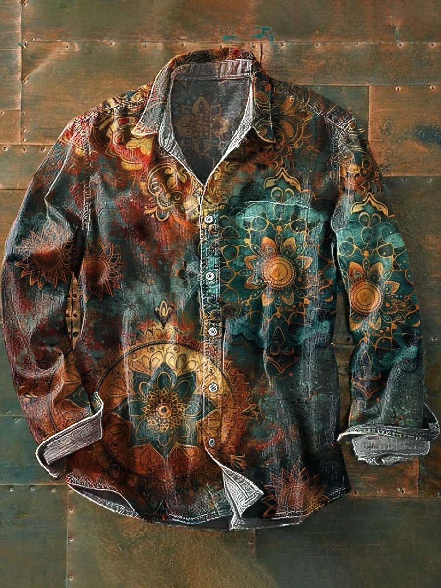 Men's Vintage Floral Print Casual Long Sleeve Shirt