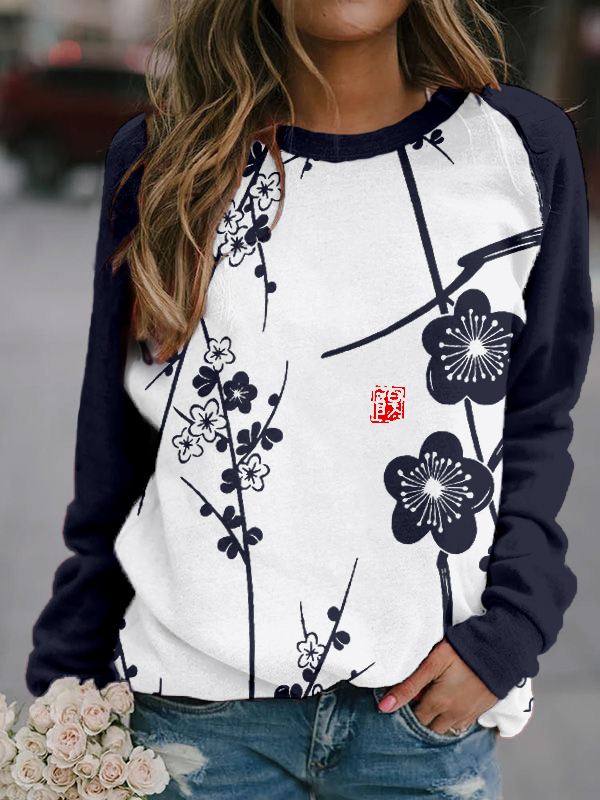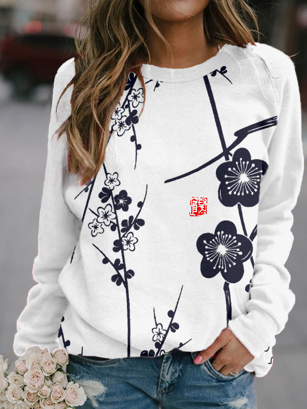 Plum Blossoms Japanese Lino Art Comfy Sweatshirt