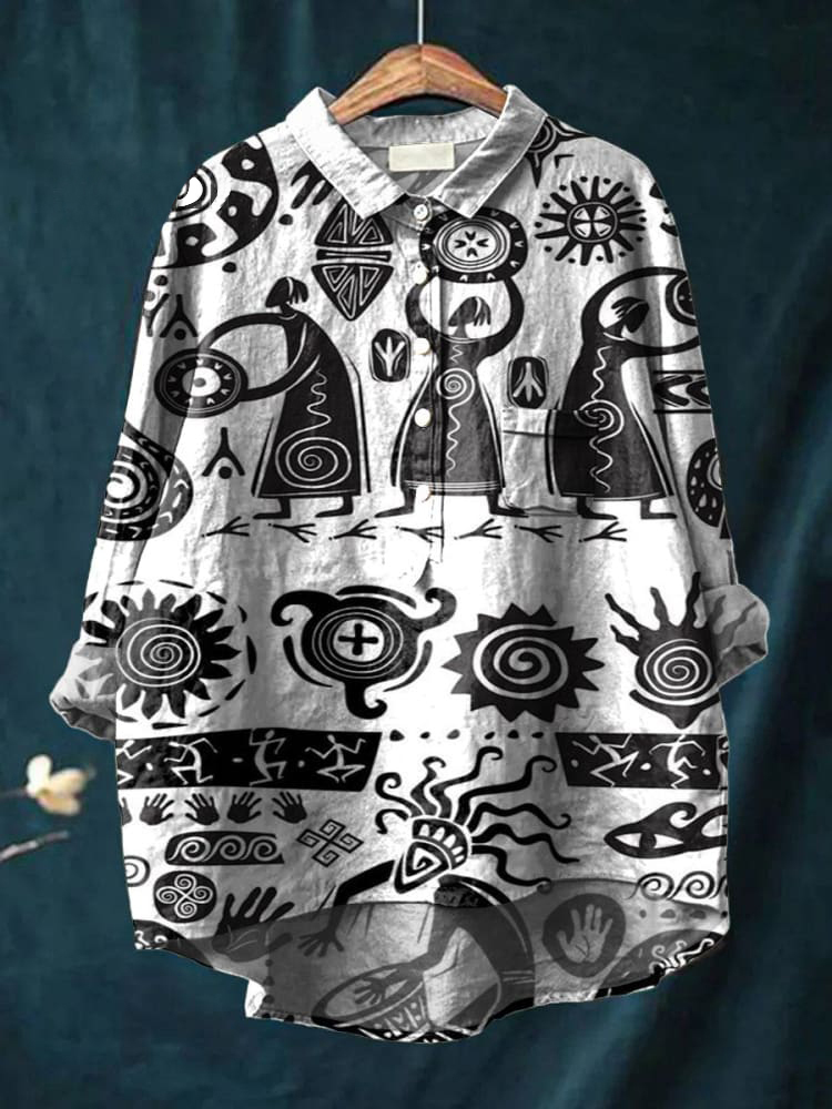Retro Mural Style Decoration Casual Cotton And Linen Shirt