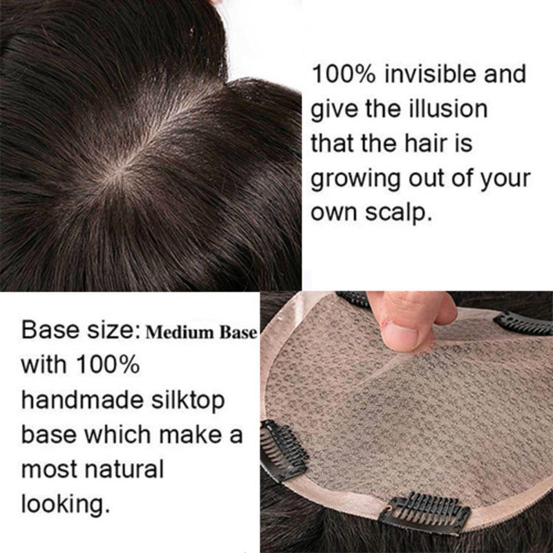 Product Type Clip on hair topper for Women Material Natural remy hair Texture Curly hair Color 10 Colors for Choose Length 08''-16'' Are Available Quality Natural Hairline and Soft Hair Package 1 × Piece Base Breathable Silk Base / Size:4.75*5 inch Last time one more year Others Heat-friendly and Can Be Trimmed, Dye, Perm, Washing