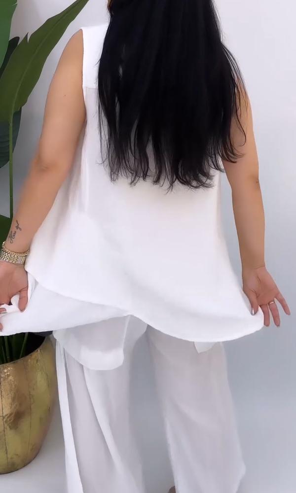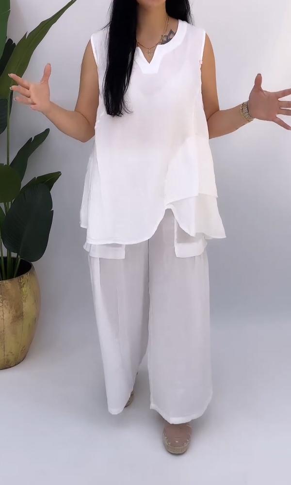 Women's Comfortable Two-Piece Cotton And Linen V-Neck Top And Pants