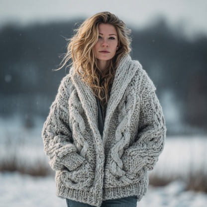 Women's Fair Isle Chunky Knit Warm Cardigan Sweater