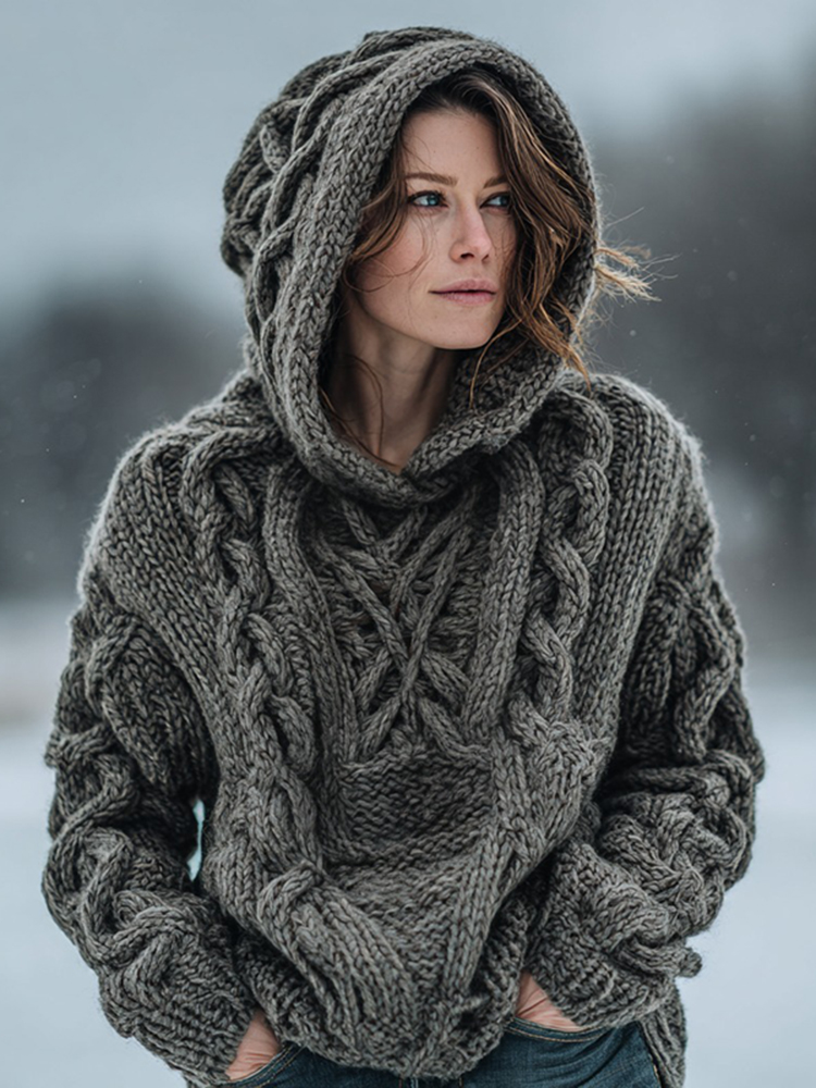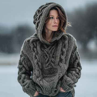 Women's Fair Isle Chunky Knit Warm Hooded Sweater