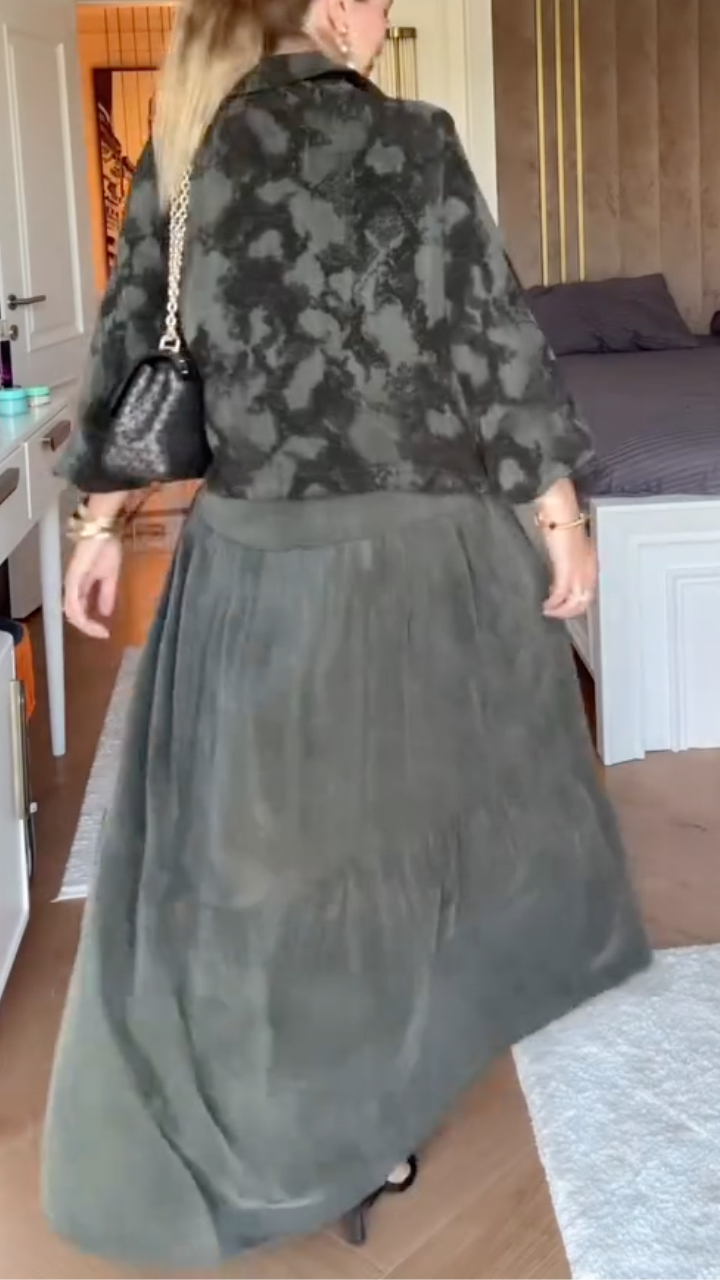 Material: Crafted from premium lightweight chiffon fabric, the dress features a soft, flowy drape with a unique tie-dye effect. The matching jacket is made from the same high-quality fabric, ensuring a cohesive, luxurious look.Design: The dress boasts a round neck, tiered ruffle hem, and drawstring waist for a customizable fit. The jacket comes with a stand collar, zip-up closure, and 3/4 sleeves, adding a stylish layer for transitional weather.Fit: Relaxed, flowy fit through the dress with a cinched waist to flatter the figure. The jacket has a loose, comfortable fit that layers beautifully over the dress.Occasion: Versatile for casual outings, office wear, weekend getaways, and semi-formal events.Care Instructions: Hand wash in cold water, line dry in shade, do not bleach, iron on low heat if needed.