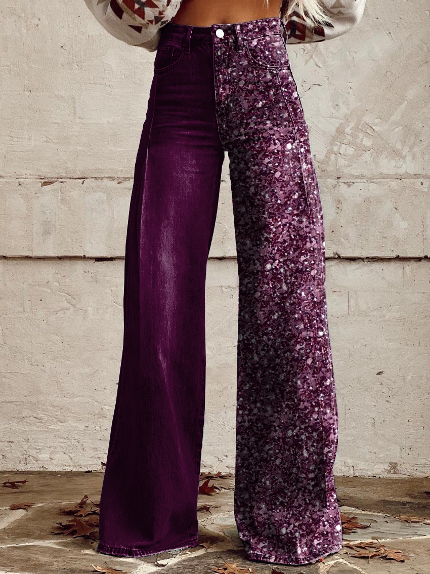 Women's Retro Crimson Sparkling Contrast Color Casual Wide Leg Pants