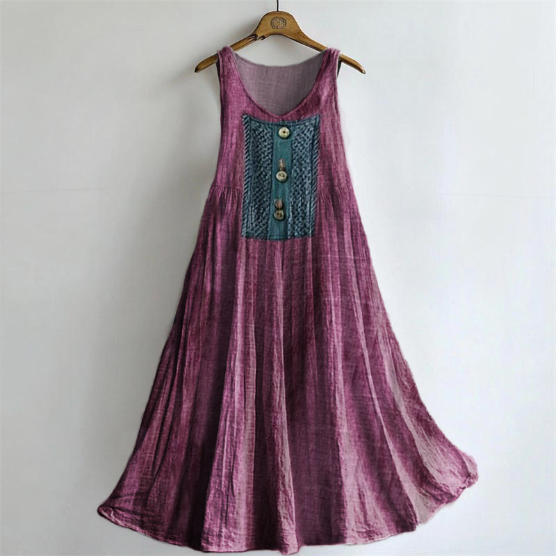Women's Tattoo Pattern Art Print Round Neck Sleeveless Cotton Pocket Dress