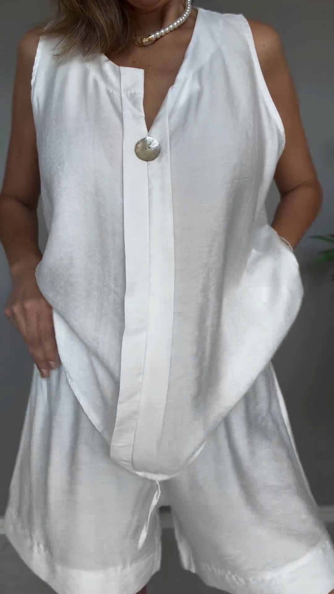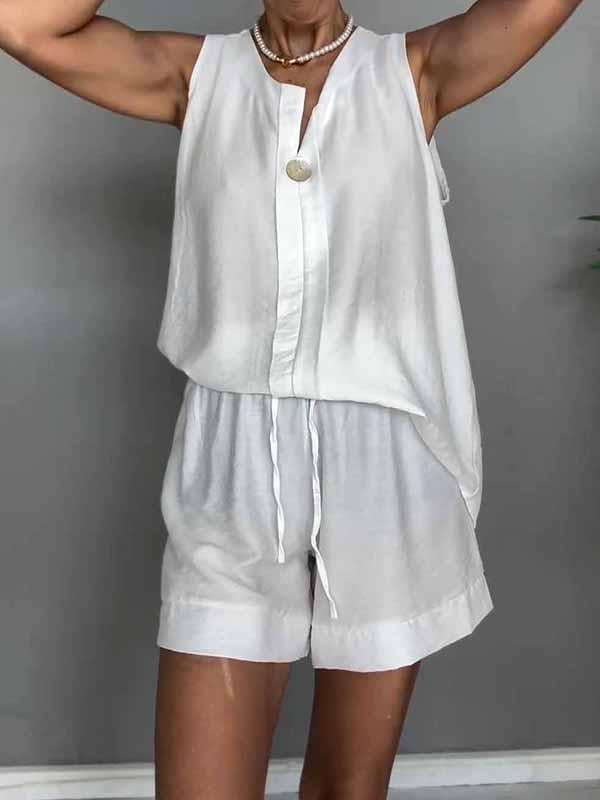 Women's V-neck Solid Color Sleeveless Two-piece Suit