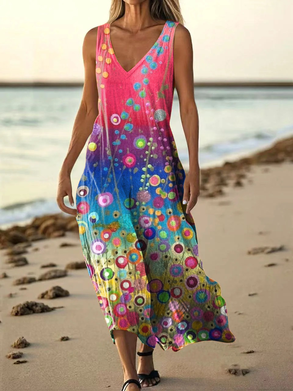 Women's Vintage Floral Art Print Pocket Cotton Dress