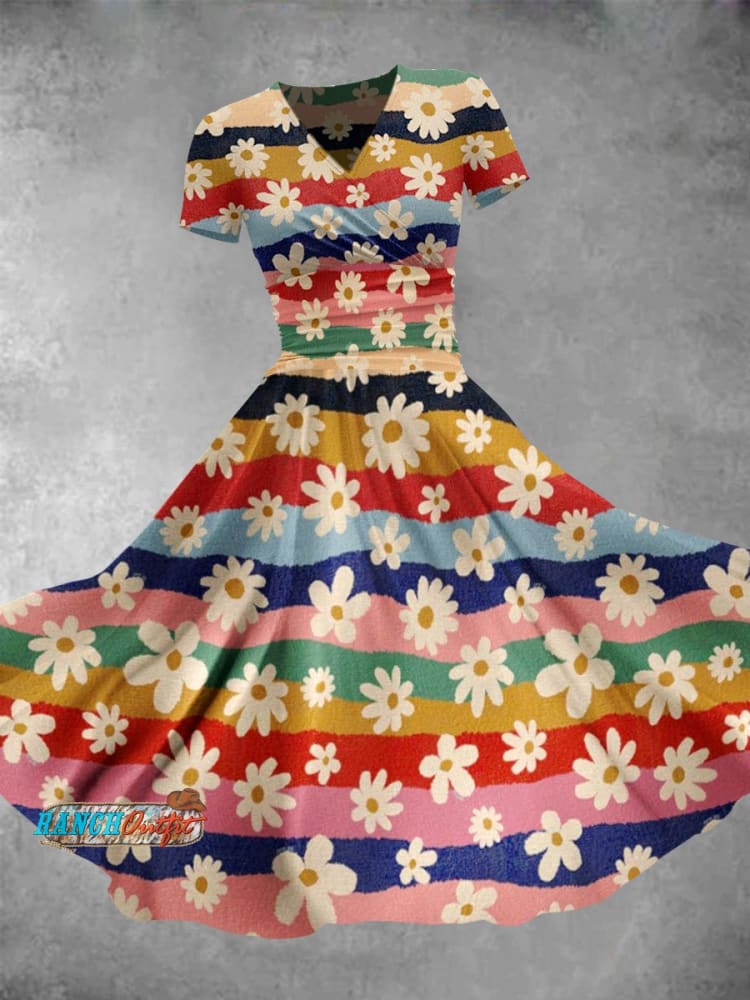 Women's Vintage Stamens Daisies Print Maxi Dress