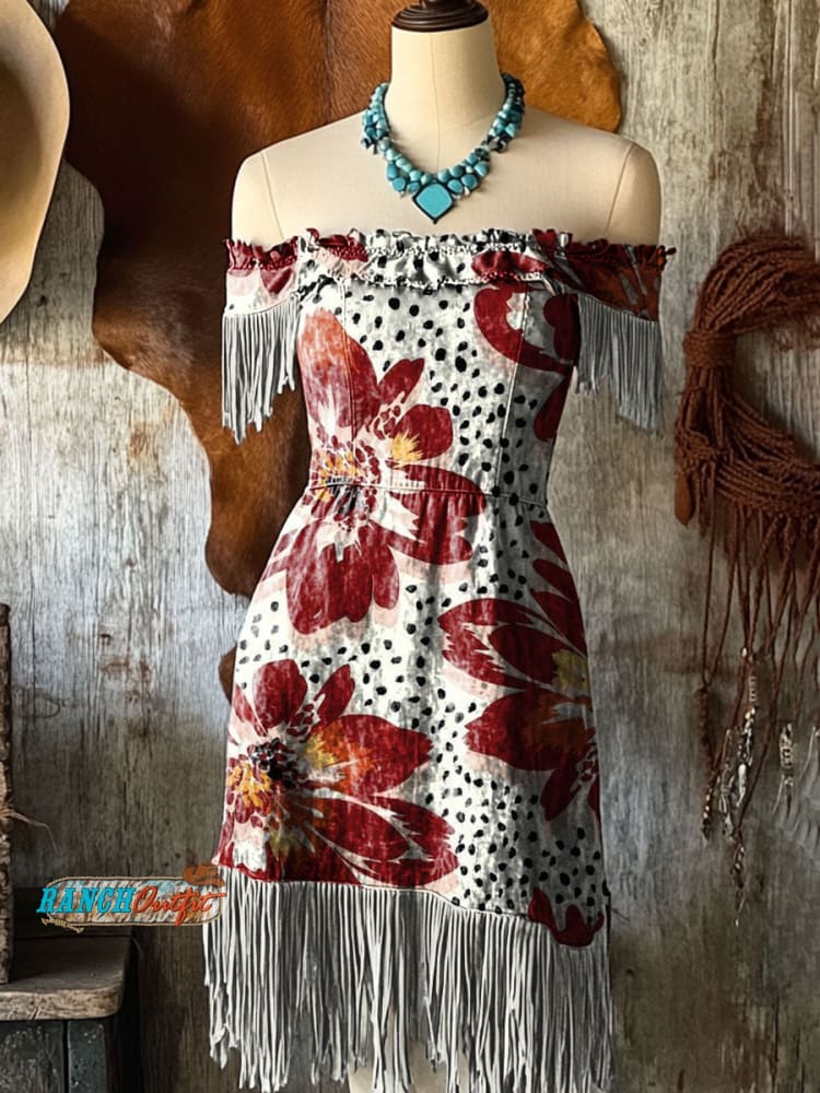 Women's Western Art Print Tassel Cotton Dress
