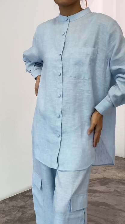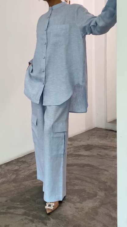 Casual Round Neck Solid Color Two-piece Suit