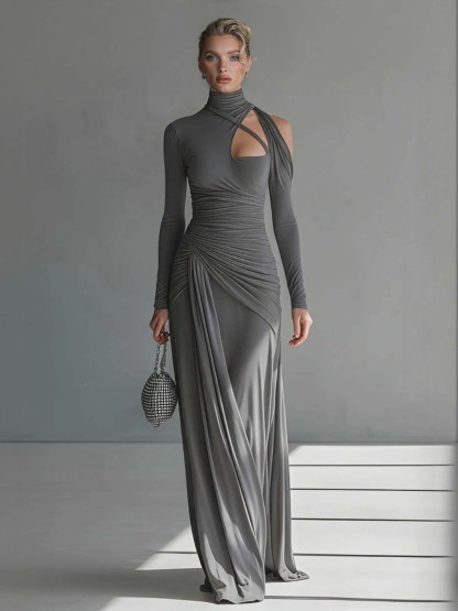 Casual Silky Stretch Pleated Cutout Maxi Dress