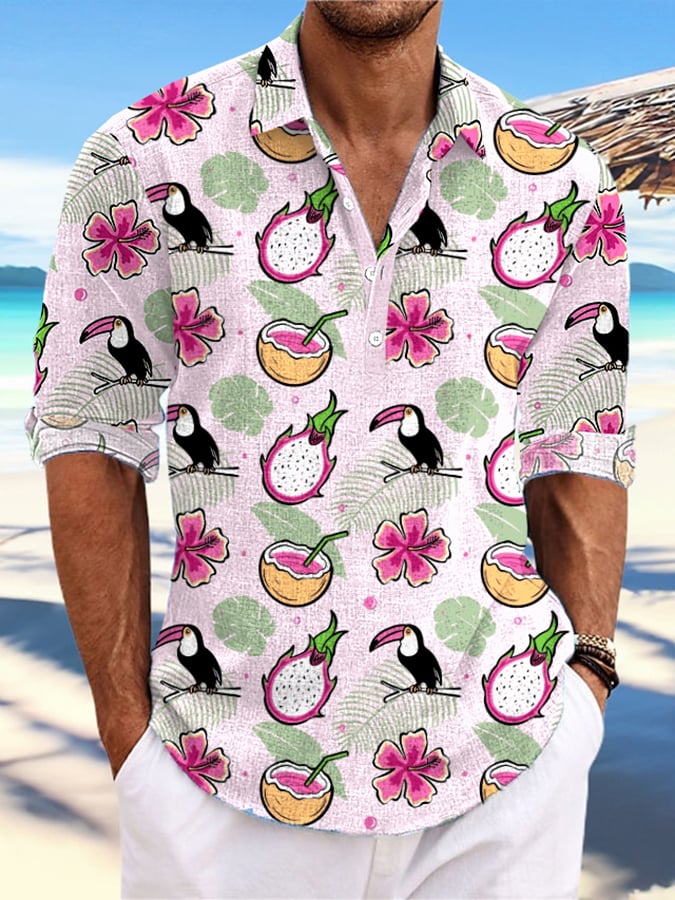 Men's Casual Hawaiian Print Stand Collar Shirt