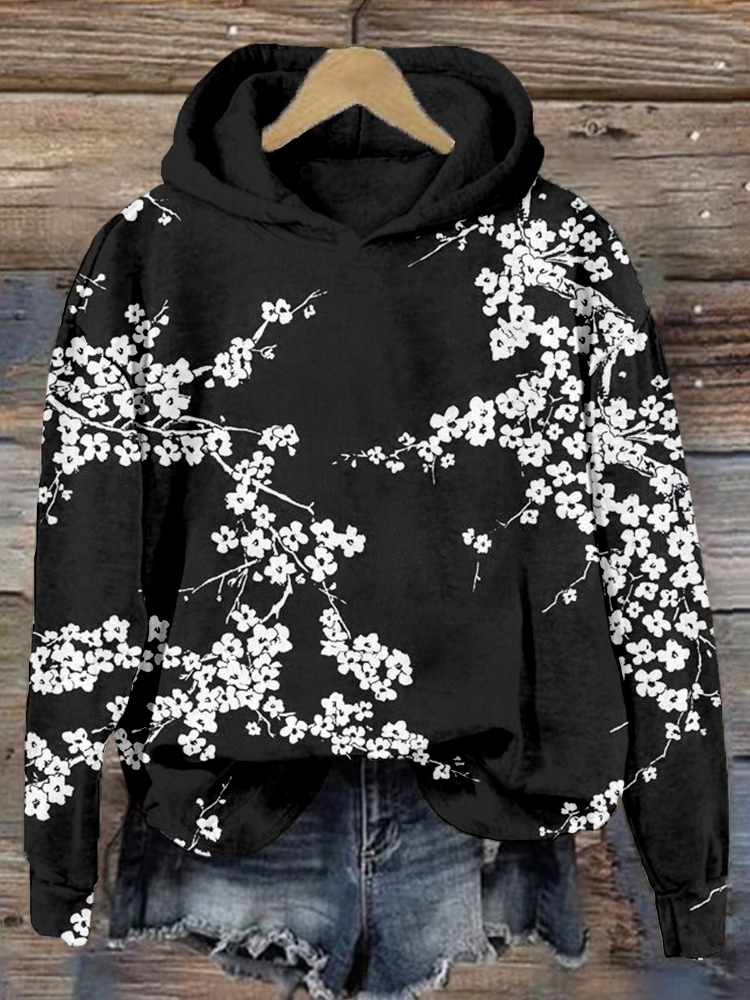 Plum Blossom Art Pattern Print Comfy Hoodie