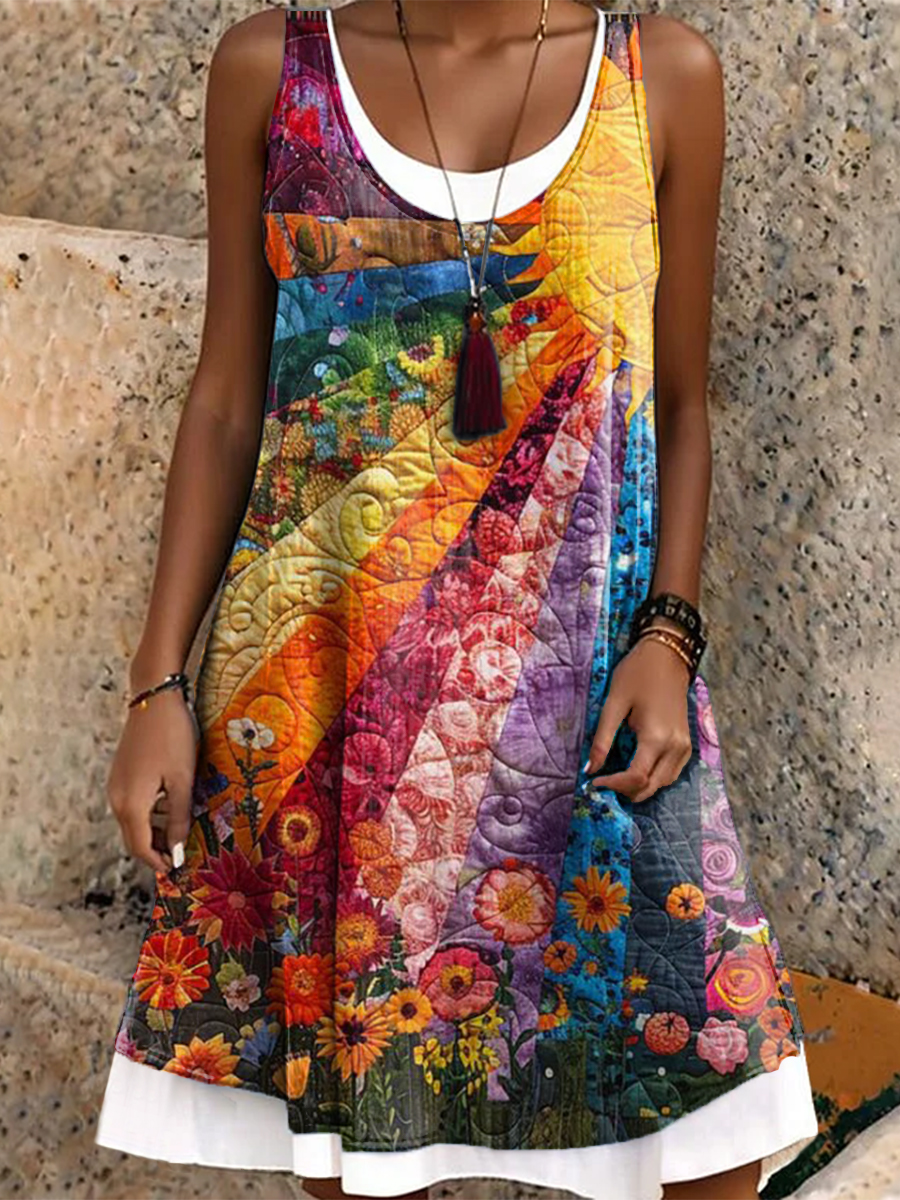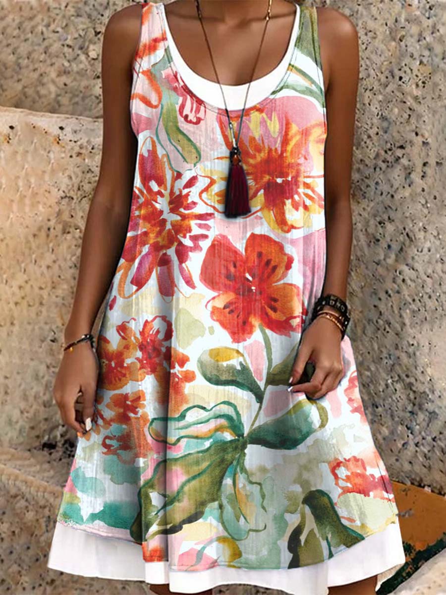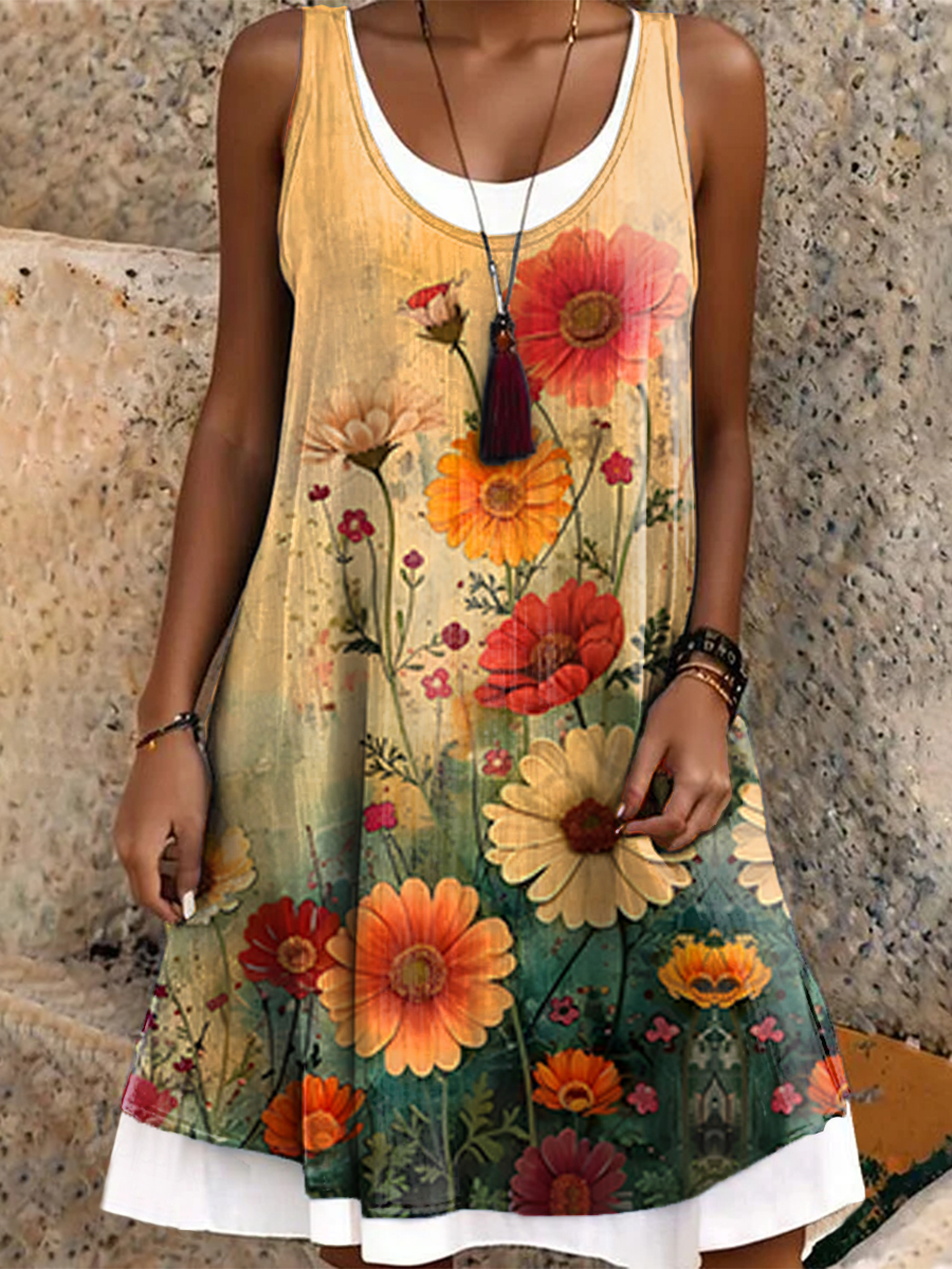 Women's Vacation Casual Loose Splicing Flowers Art Print Dress