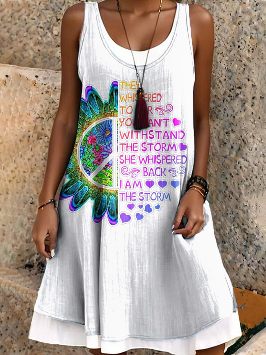 Women's Colorful Patterns Art Print Round Neck Sleeveless Cotton Pocket Dresses