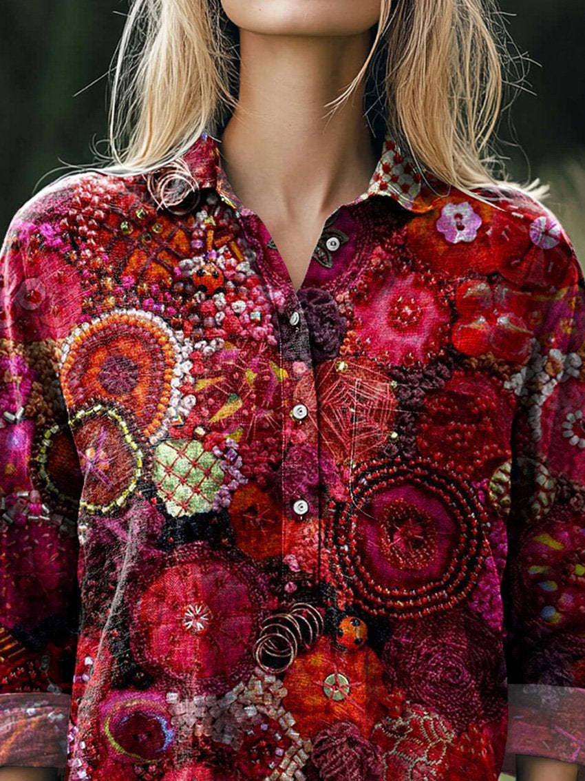 Colorful Sequins Art Printed Women's Casual Cotton And Linen Shirt