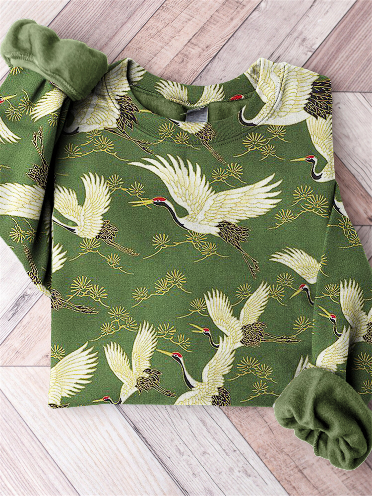 Cranes & Pine Trees Japanese Traditional Pattern Comfy Sweatshirt