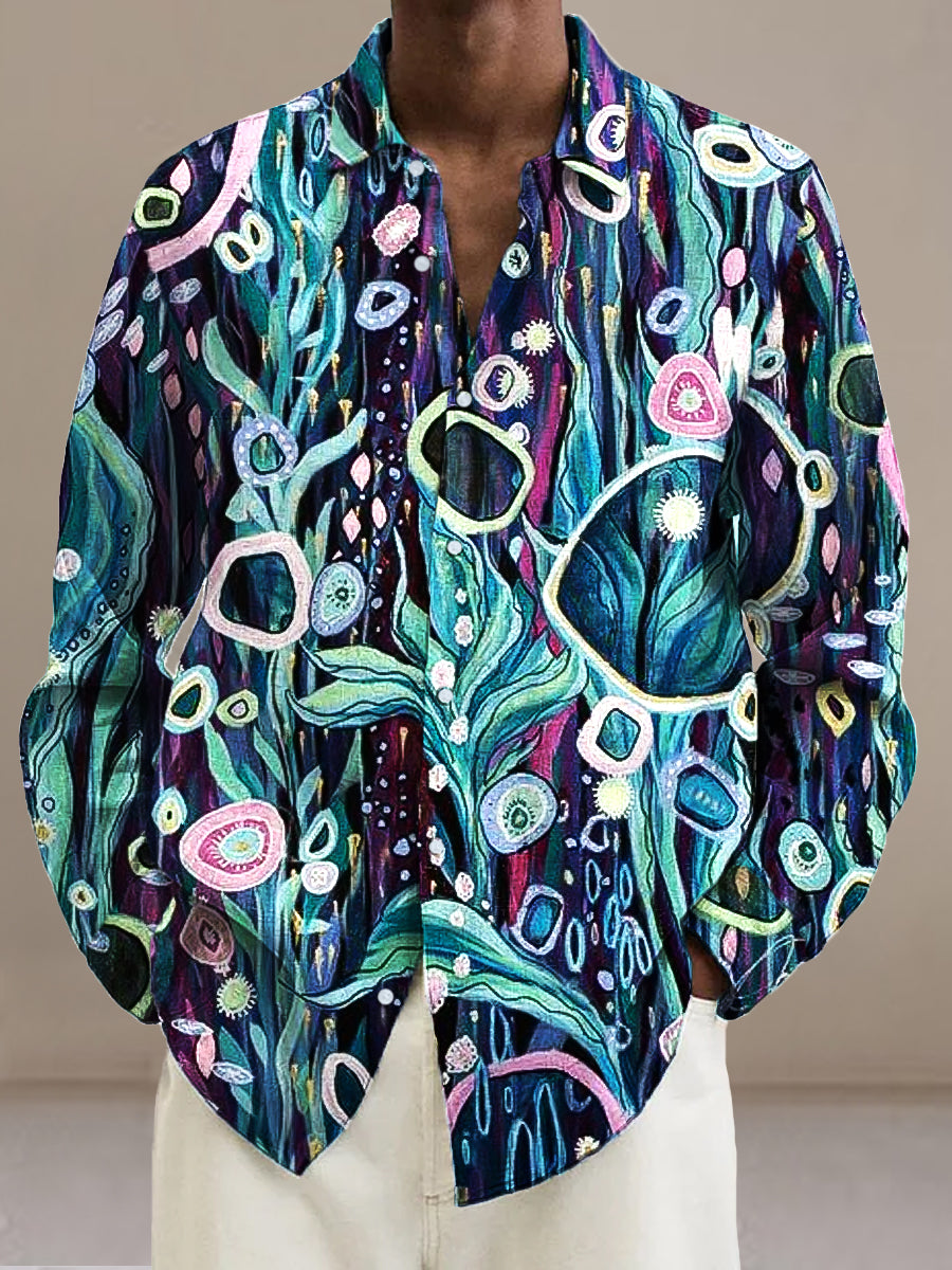 Gentleman Vintage Abstract Seagrass Art Print Long Sleeve Shirt