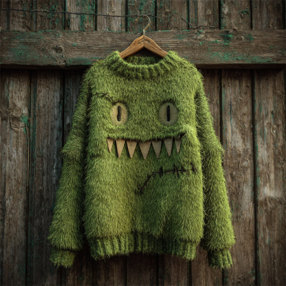 Halloween Fuzzy Monster Inspired Stitched Cozy Knit Sweater