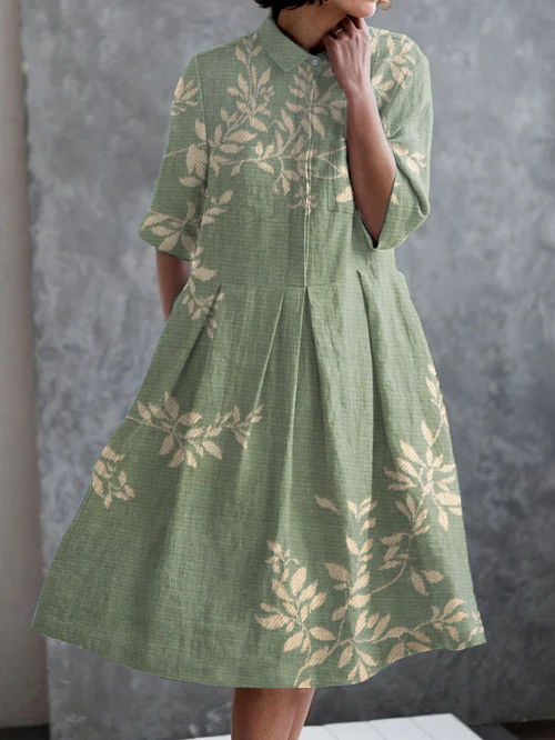 Japanese Art Print Casual Elegant Pocket Half Sleeve Dress