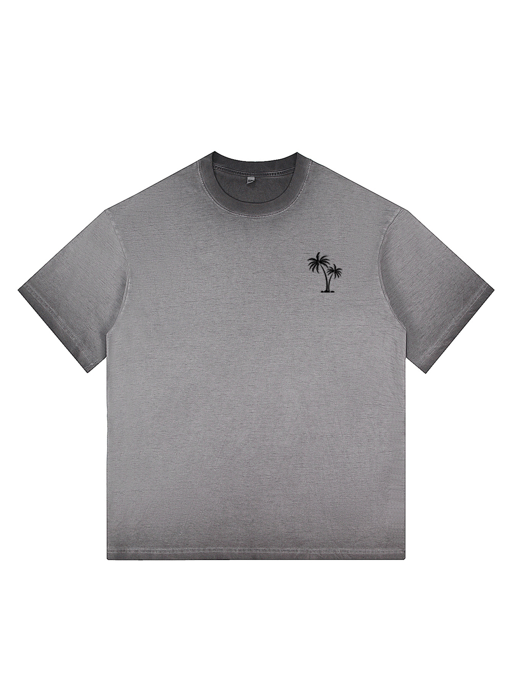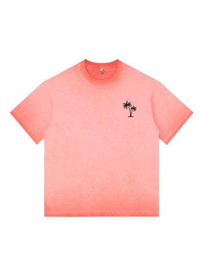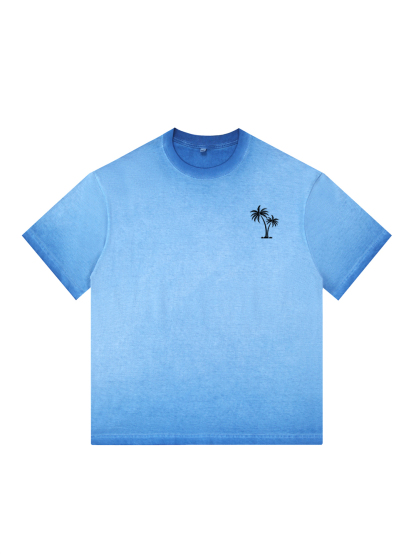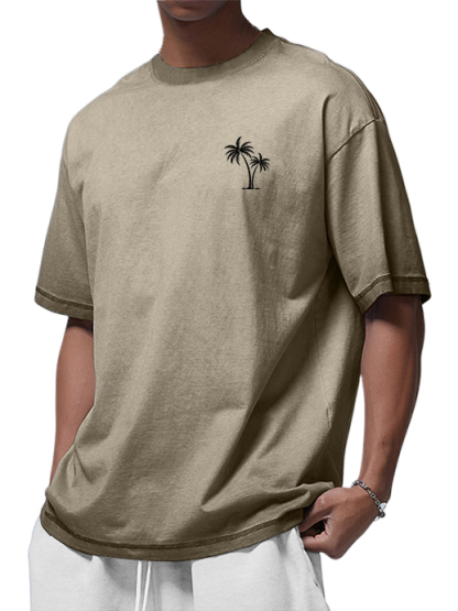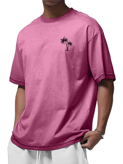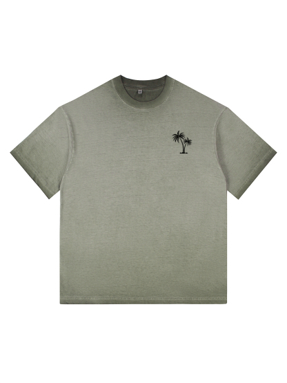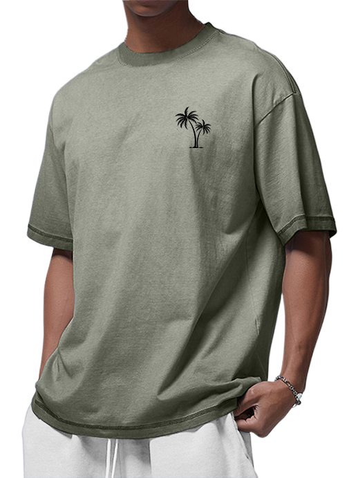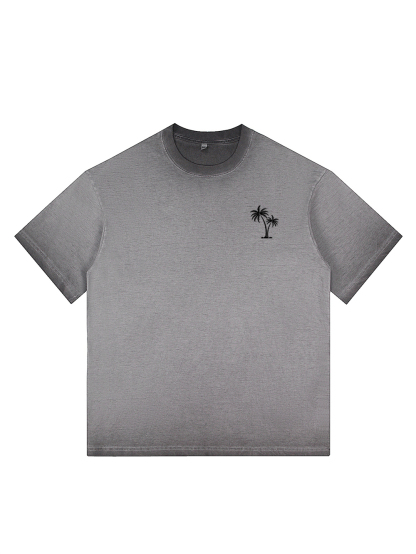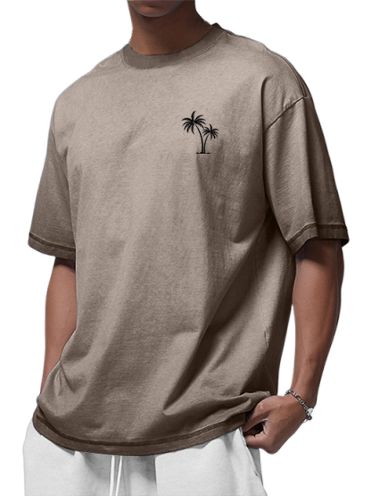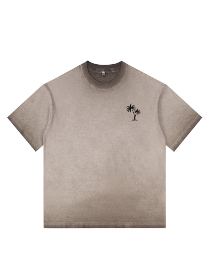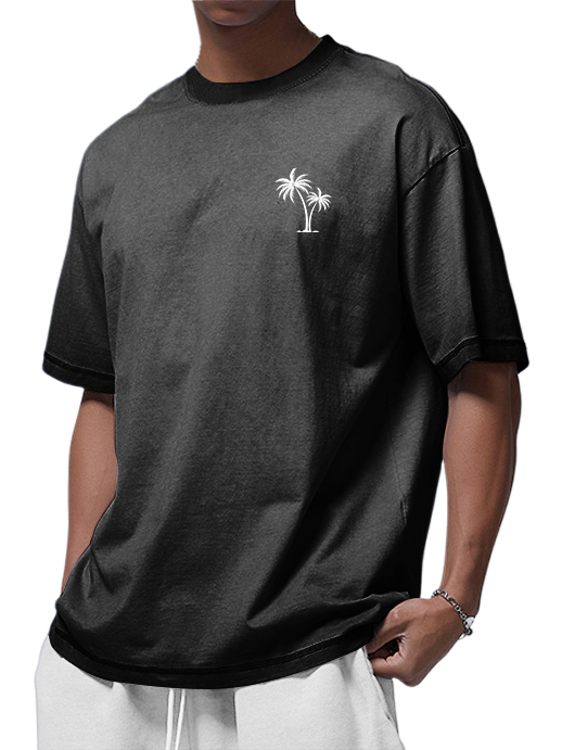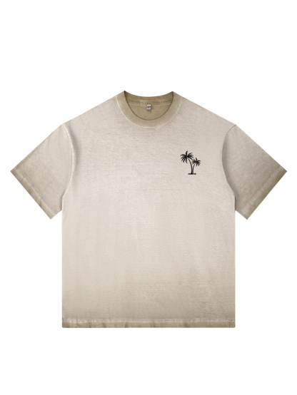Men's 100% Cotton Washed Distressed Palm Tree Retro Casual Gradient Short-sleeved T-shirt