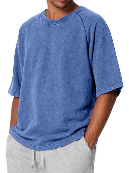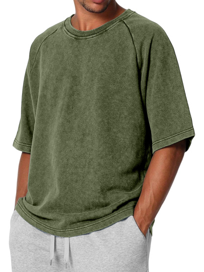 Men's Casual Retro Solid Color Raglan Short Sleeve T-shirt