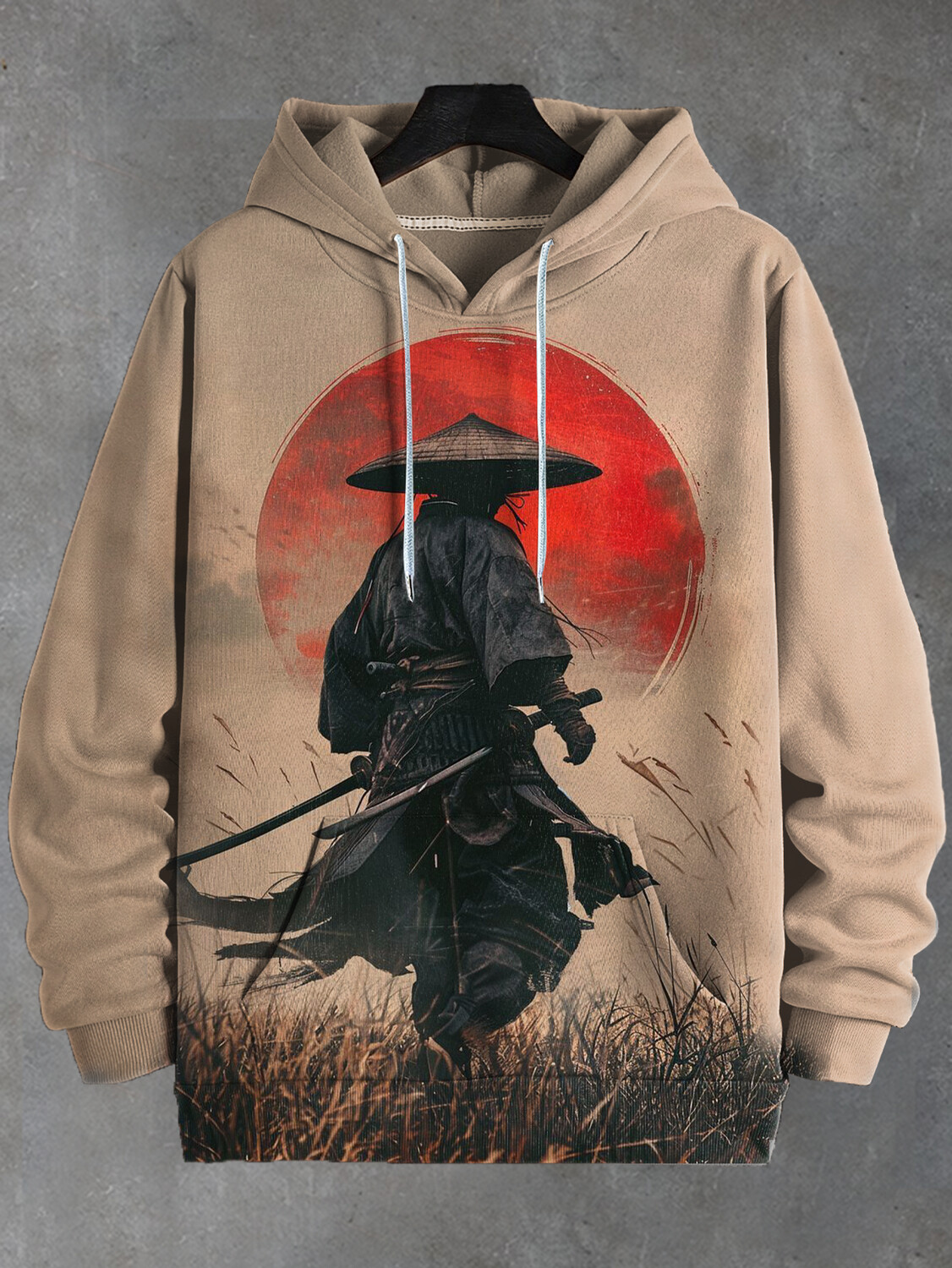 Men's Japanese Samurai Sun Art Print Hooded Sweatshirt