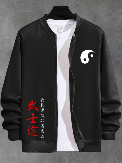 Men's Japanese Yin Yang Taiji Bushido Print Zip Up Jacket
