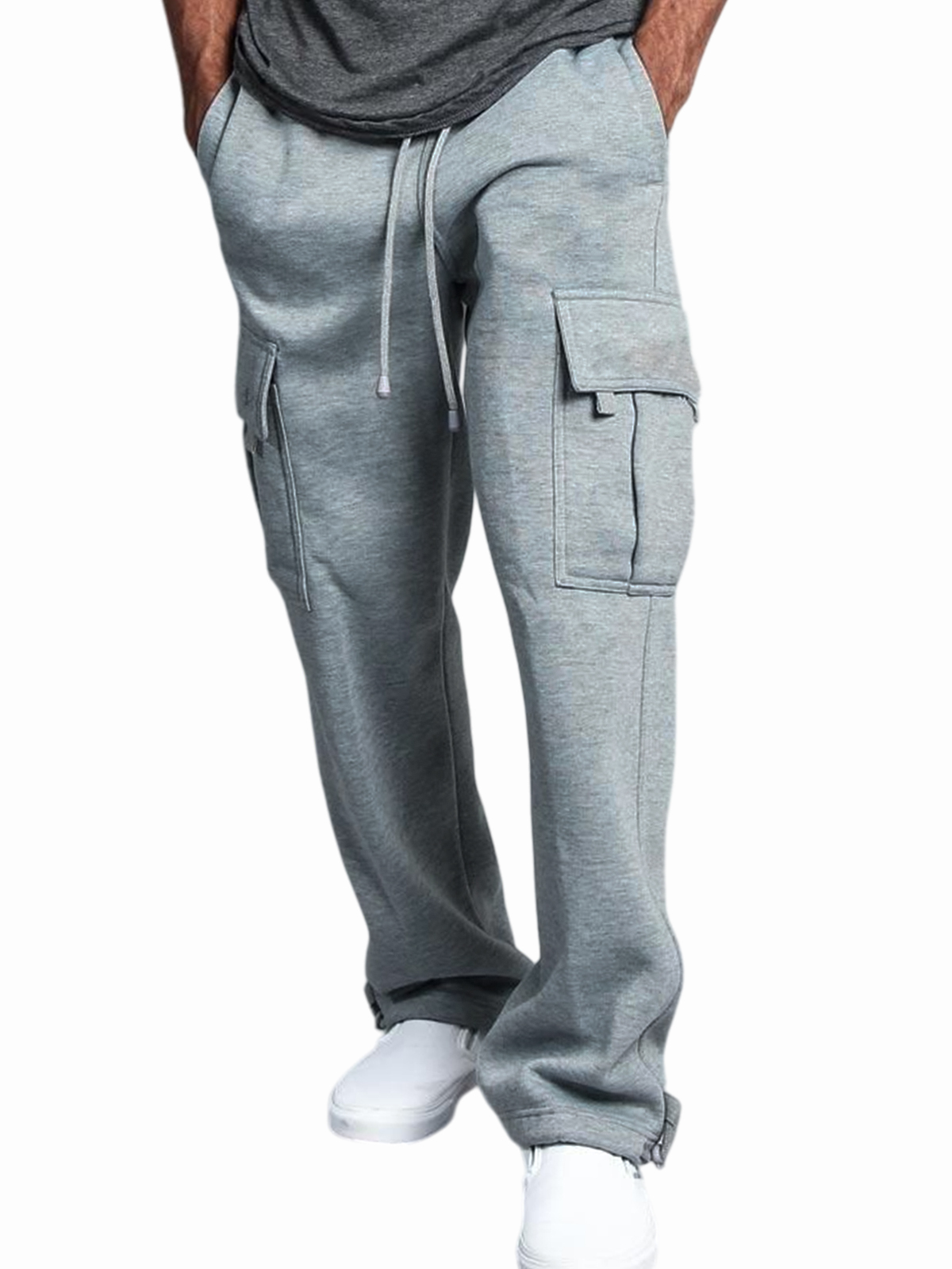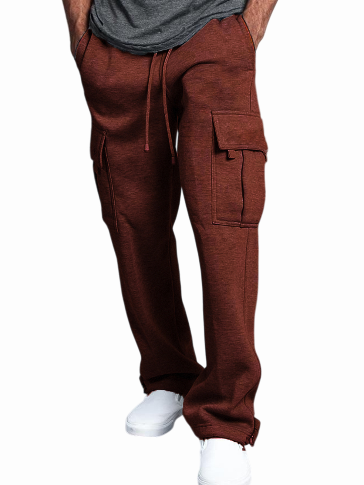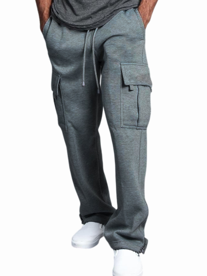 Men's Practical Multi-Pocket Retro Workwear Casual Sweatpants Elastic Waist Straight Trousers
