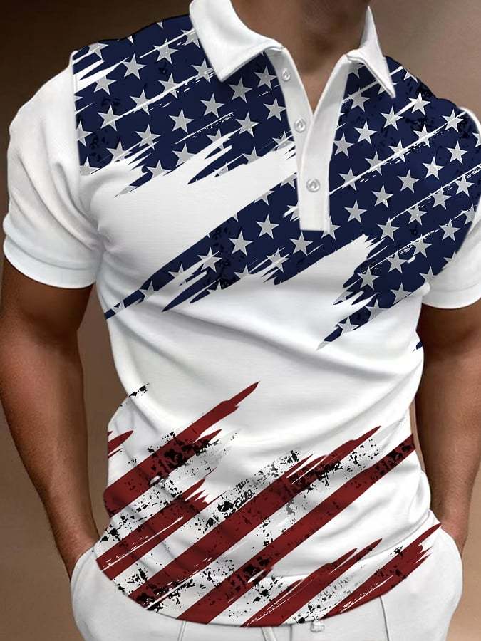 Men's Retro Flag Print Casual Polo Shirt