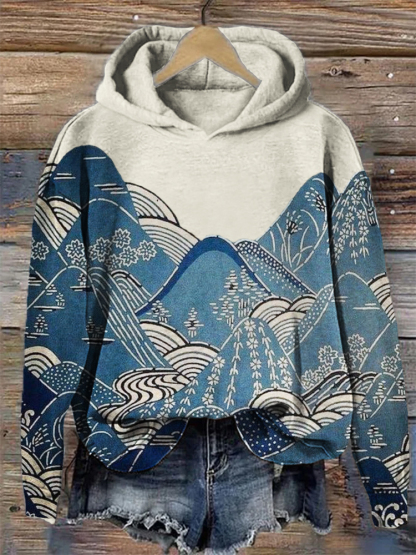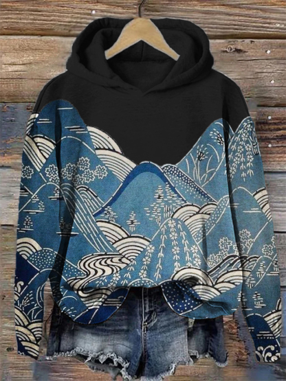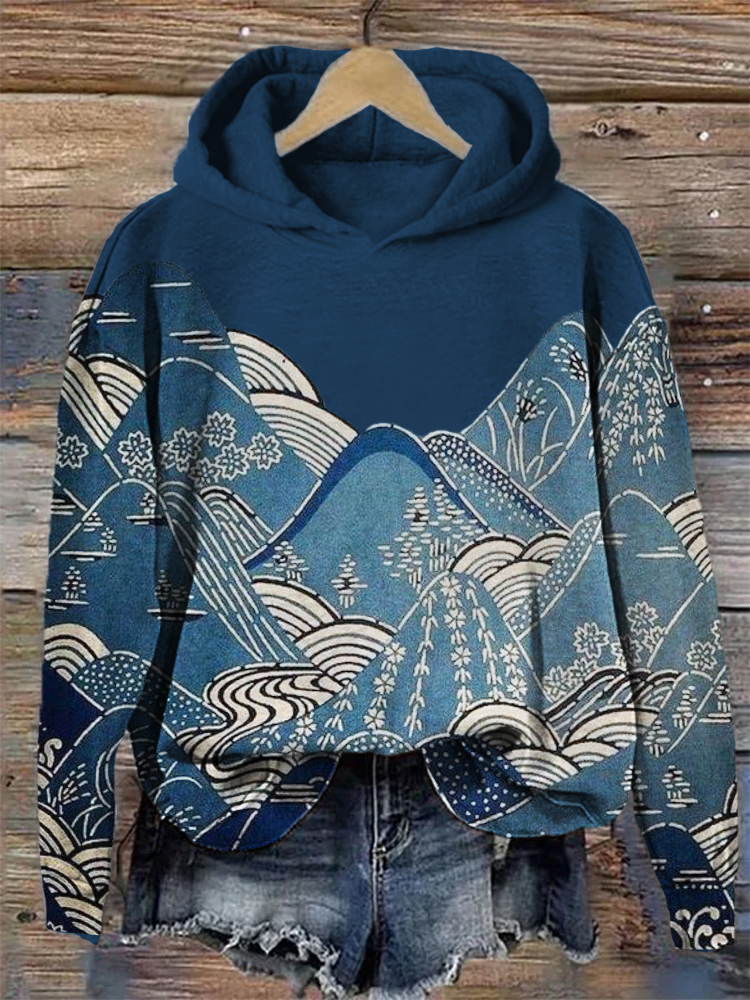 Mountains & Waves Landscape Japanese Art Cozy Hoodie