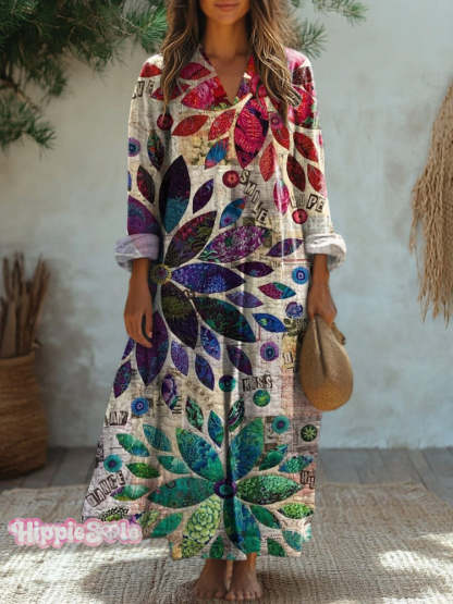 Patchwork Floral Art Printed Women's Dress