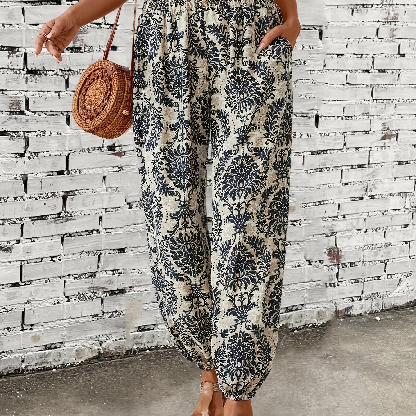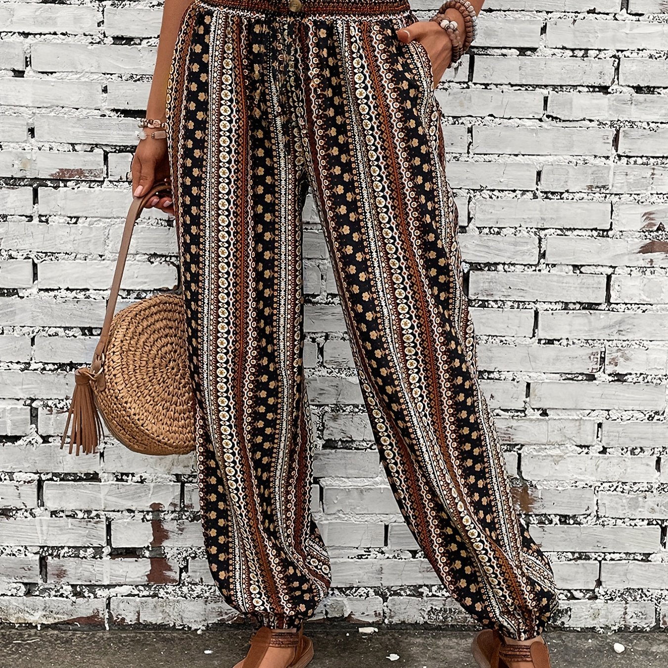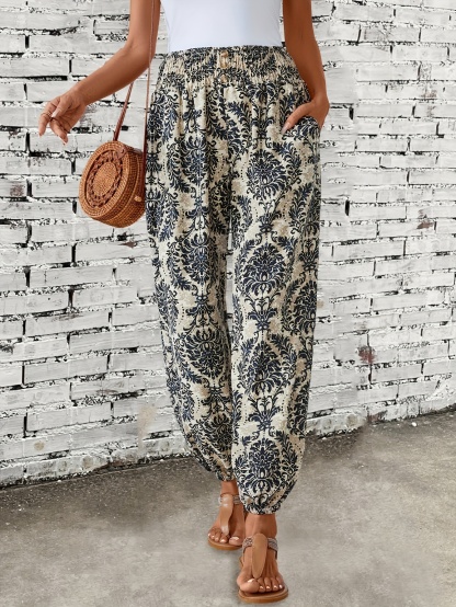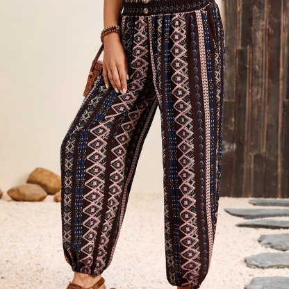 Spring\u002FSummer Chic: Boho Chic Shirred-Waist Tribal Joggers for Women - Comfortable, Durable & Easy Maintenance