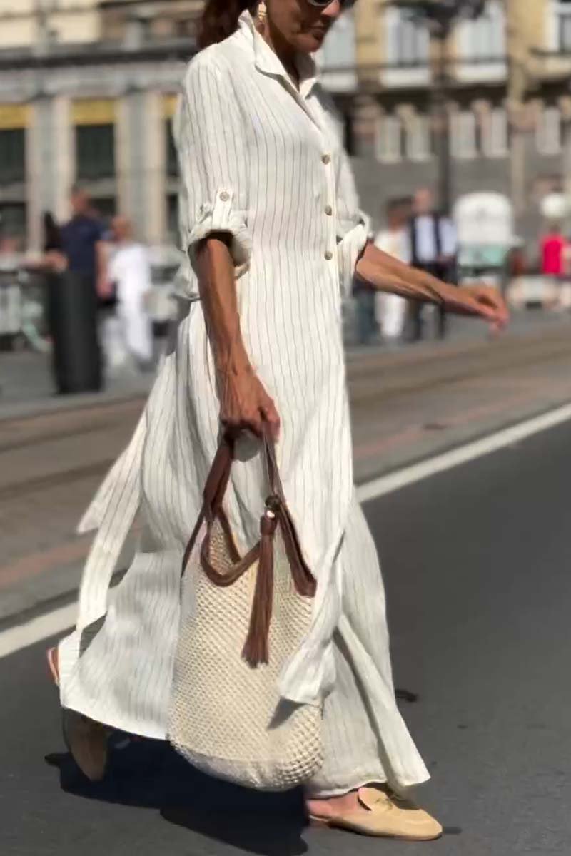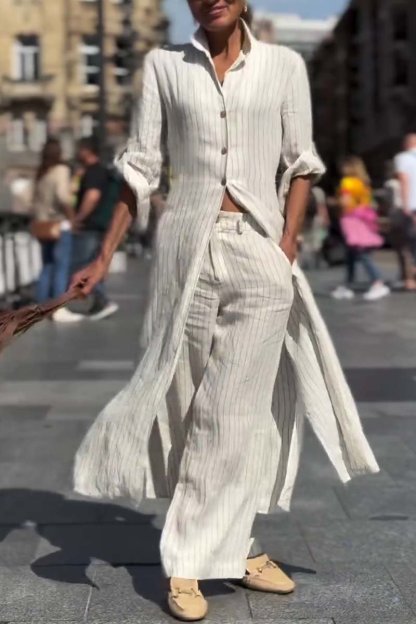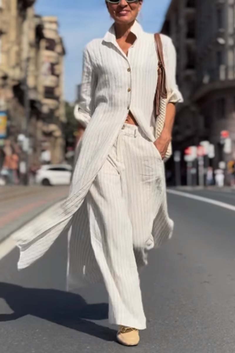 Women's Casual Striped Long Shirt and Wide Leg Pants Two-piece Set