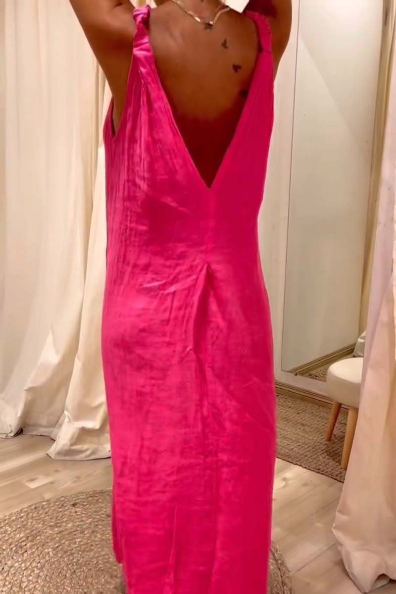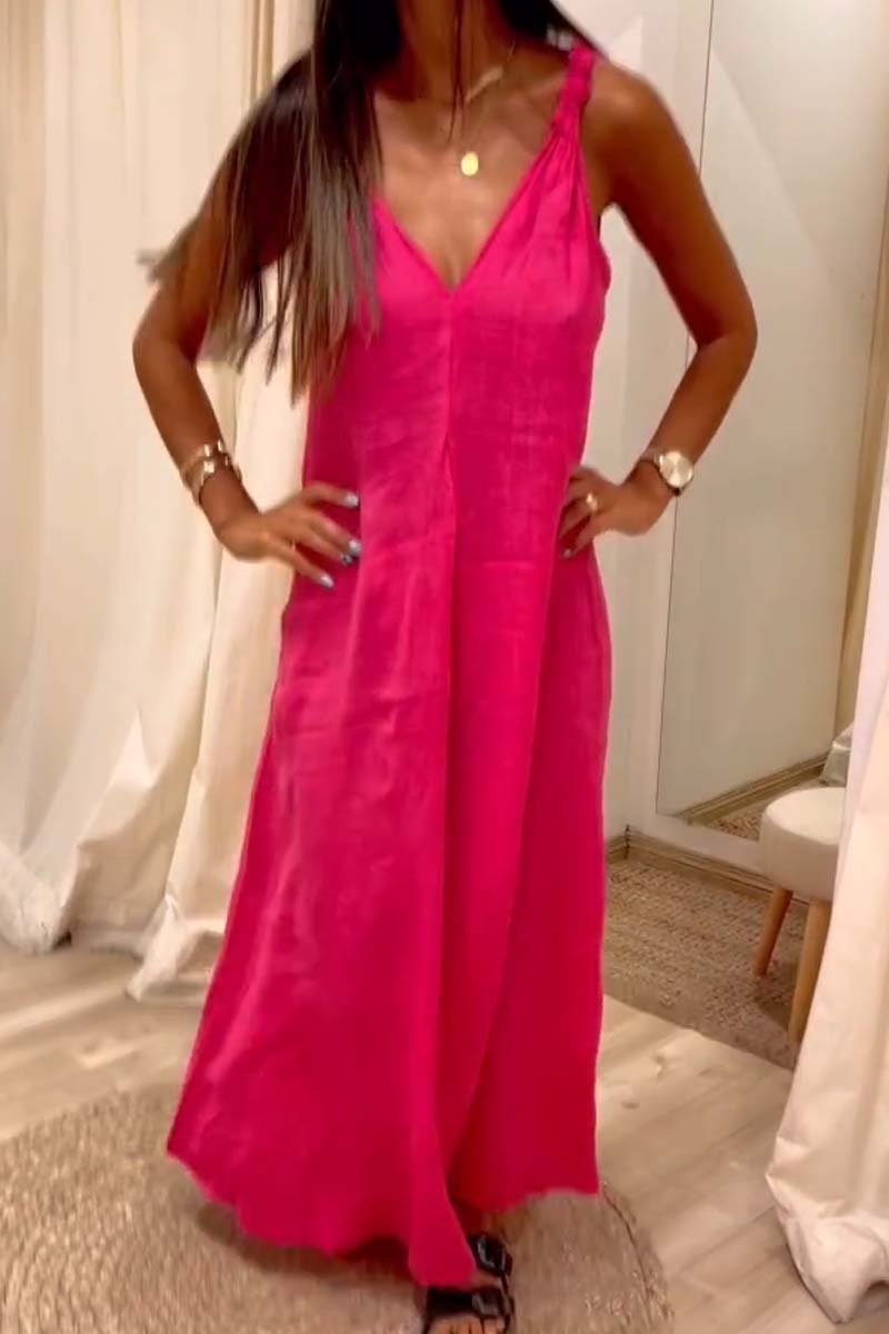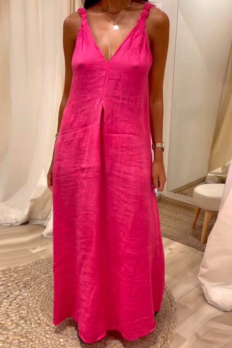 Women's casual suspender cotton and linen V-neck dress