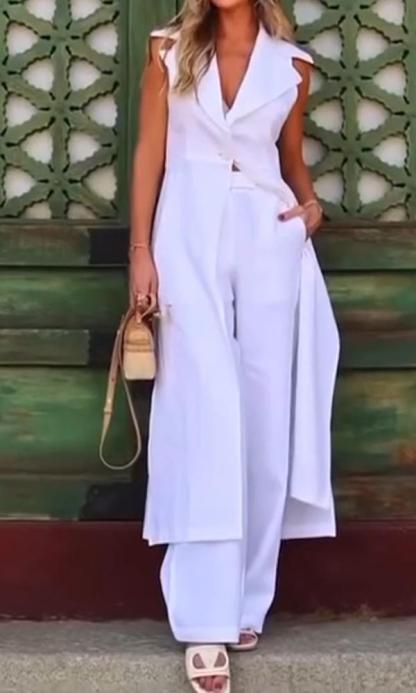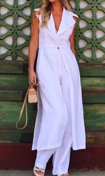 Women's Comfortable Two-Piece Cotton And Linen V-Neck Top And Pants