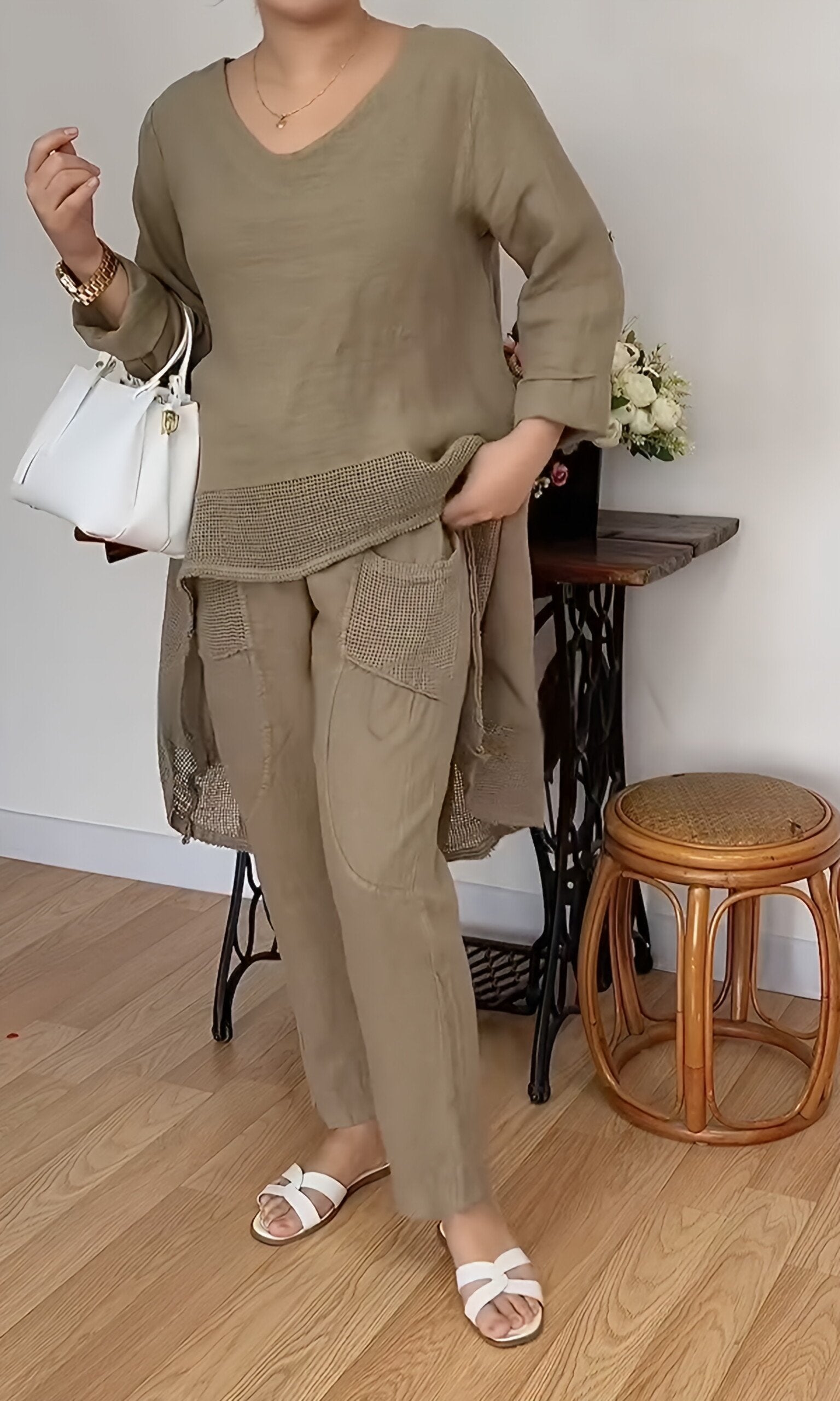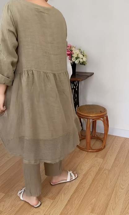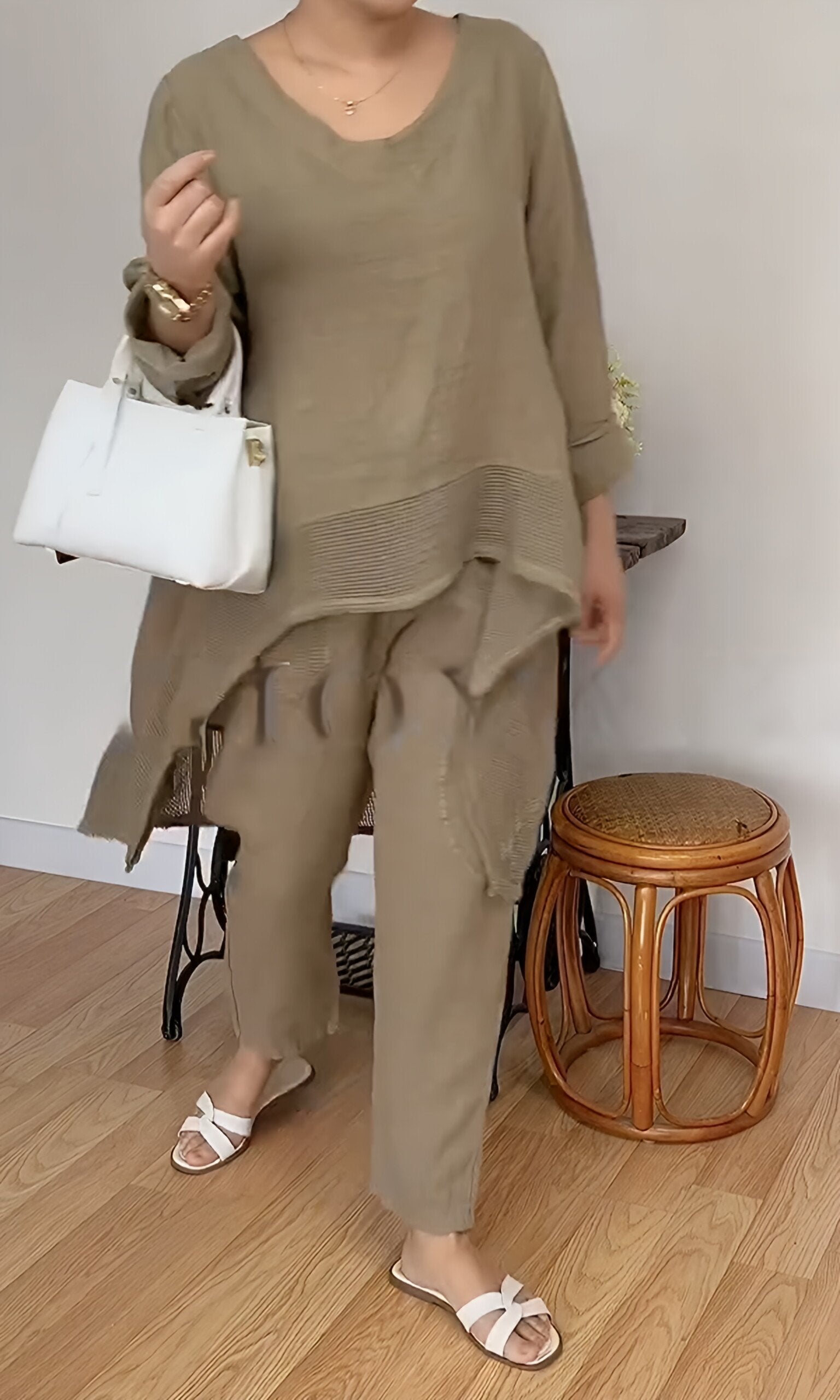 Women's Comfortable Two-Piece Cotton Linen Blouse And Trousers