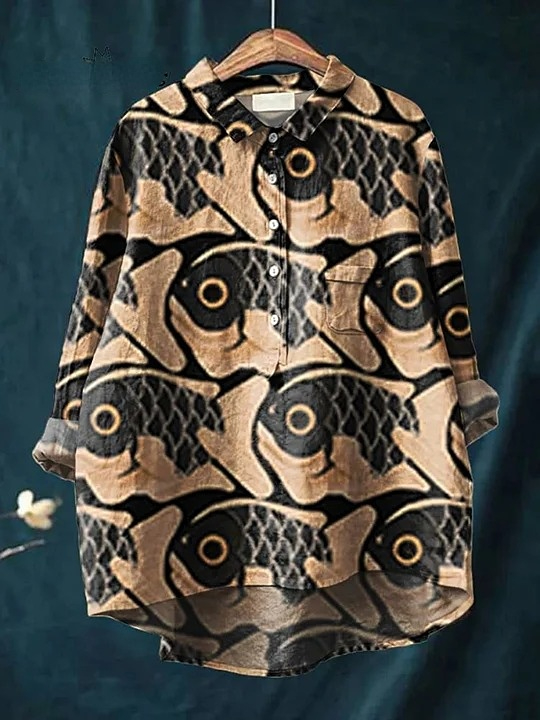 Women's Fish Art Print Casual Cotton And Linen Shirt