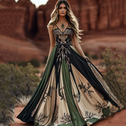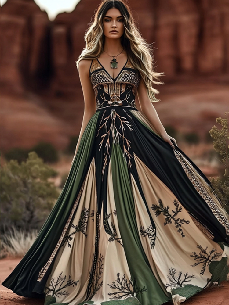 Women's Gradient Viking Linen V Neck Comfy Maxi Dress